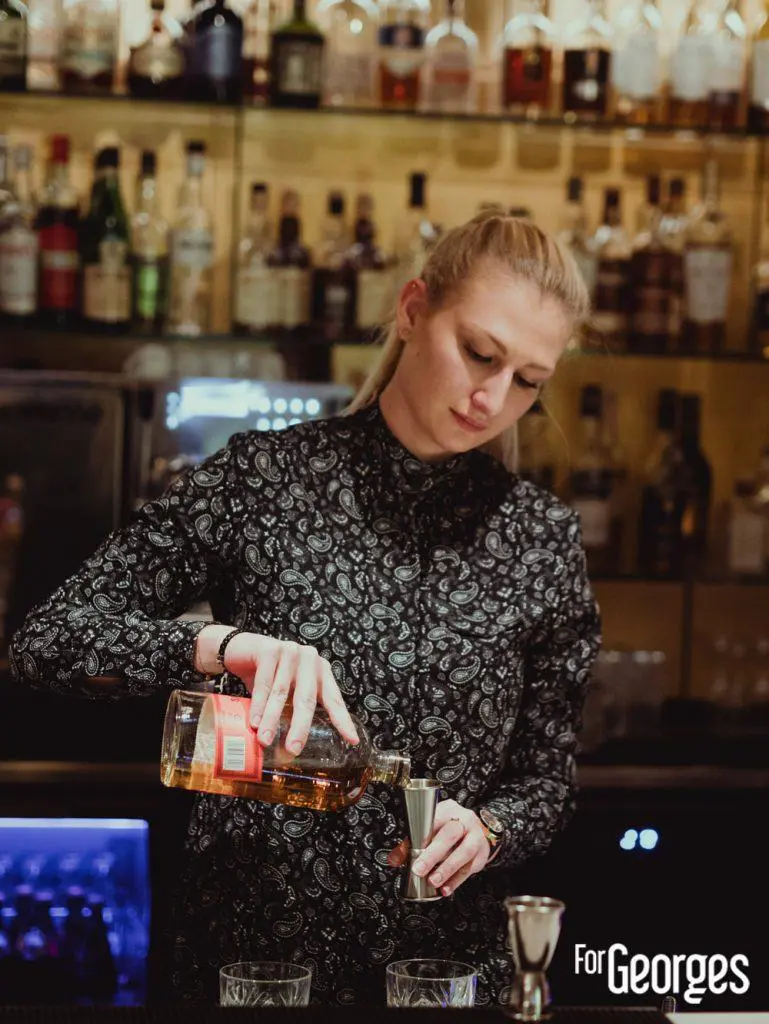 Arrivée devant la porte, il faudra sonner à l’interphone et regarder la caméra. Ensuite, on monte l’escalier et on arrive dans un bar qui nous fait quitter la terre. Un petit côté Tim Burton avec ses lustres retournés collés au plafond, ou encore ses paons empaillés. Peut-être que la déco Hendrick’s y est aussi pour quelque chose. En tout cas, on s’y sent bien et on y reste confortablement installé jusqu’à point d’heure.