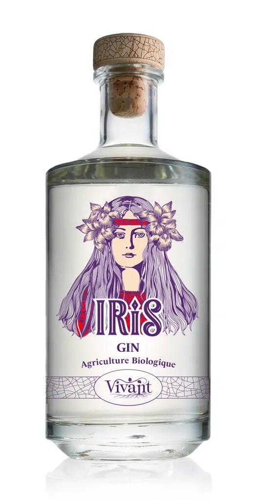 Le portrait sur la bouteille évoque la belle déesse Iris, porteuse de bonnes nouvelles dont, sans doute, celle de ce gin français engagé aux saveurs puissantes.