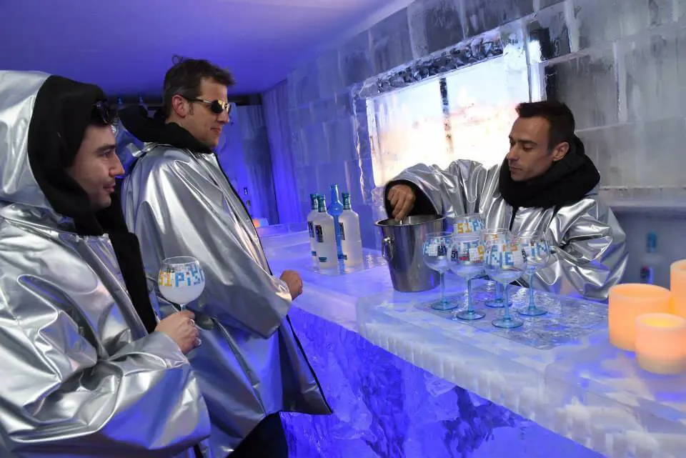 Rendez-vous au fond de la belle cour arborée devant le bloc de fer glacé. A l’intérieur vous attend un bar polaire à -10°.