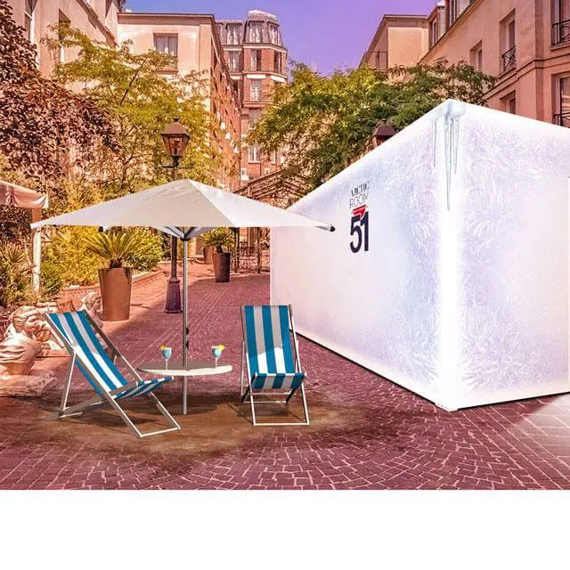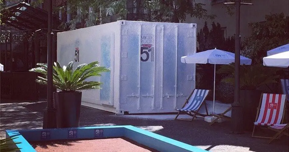 Depuis 1 mois, un drôle de container a poussé sur la magnifique terrasse des Jardins du Marais. C’est l’Arctic Room 51 pour promouvoir le Pastis 51 glacial.