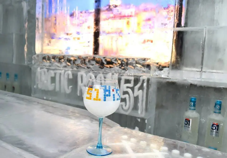 Bien plus abordable que ses congénères givrés, l’entrée du bar est à 5 euros comprenant un verre de 51 glacial.