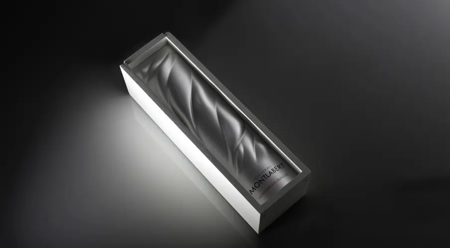 Cette fois c'est la maison de vin bordelaise Chateau Montlabert qui a fait appel à son talent créatif pour revisiter la caisse de vin classique avec une vision très contemporaine.