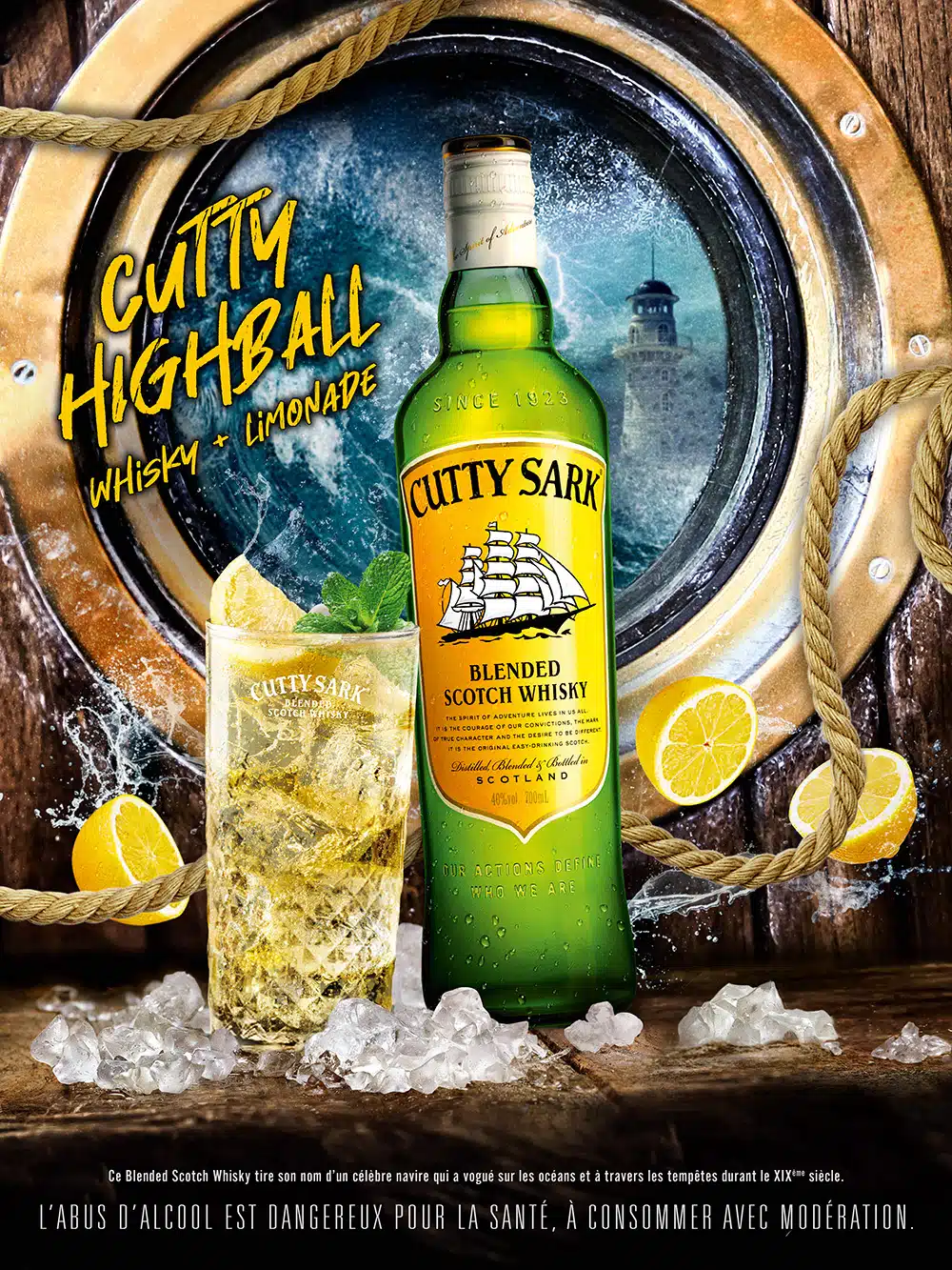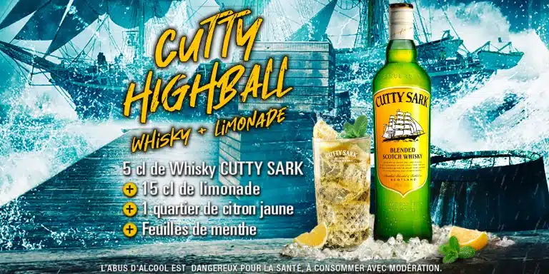 D'ailleurs, CUTTY SARK dévoile cette année un cocktail simple à réaliser : le Cutty Highball. Le Highball est une famille de cocktail, internationalement reconnue, qui consiste à mélanger un spiritueux et de l’allonger généreusement d’un mixer pour obtenir un cocktail simple et frais. Cette année, c'est la limonade qui vient compléter CUTTY SARK. Le tout servi dans un verre premium gravé spécialement créé pour cette recette.