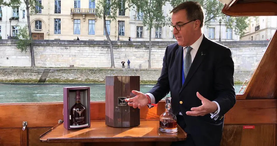 Au Whisky Live 2016, difficile pour les marques d'alcool de sortir du lot. Si certaines font le show avec des barmen, d'autres avec des hôtesses en latex (ou cuir... on ne sait pas trop), d'autres encore avec de très chères et rares bouteilles, Dalmore a décidé de profiter de la configuration des lieux pour s'extirper de la foule massive pour s'échapper avec quelques privilégiés sur la Seine. Notre commandant de bord : Jonathan Driver en personne. Bouton de manchette en forme de cerf, pin's en forme de cerf. Pas de doute nous étions bien sur le bateau Dalmore !