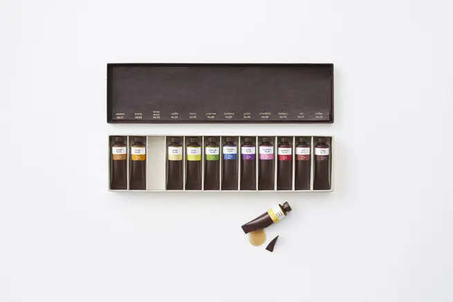 Les chocolats à la liqueur existent depuis la nuit des temps. Mais là... il s'agit de chocolat en forme de tube de peinture à l'huile ! La ressemblance est flagrante. Une belle innovation qui donnera peut être des idées à certaines marques de liqueur ou autres spiritueux... En tout cas Georges a plein d'idées à leur proposer !