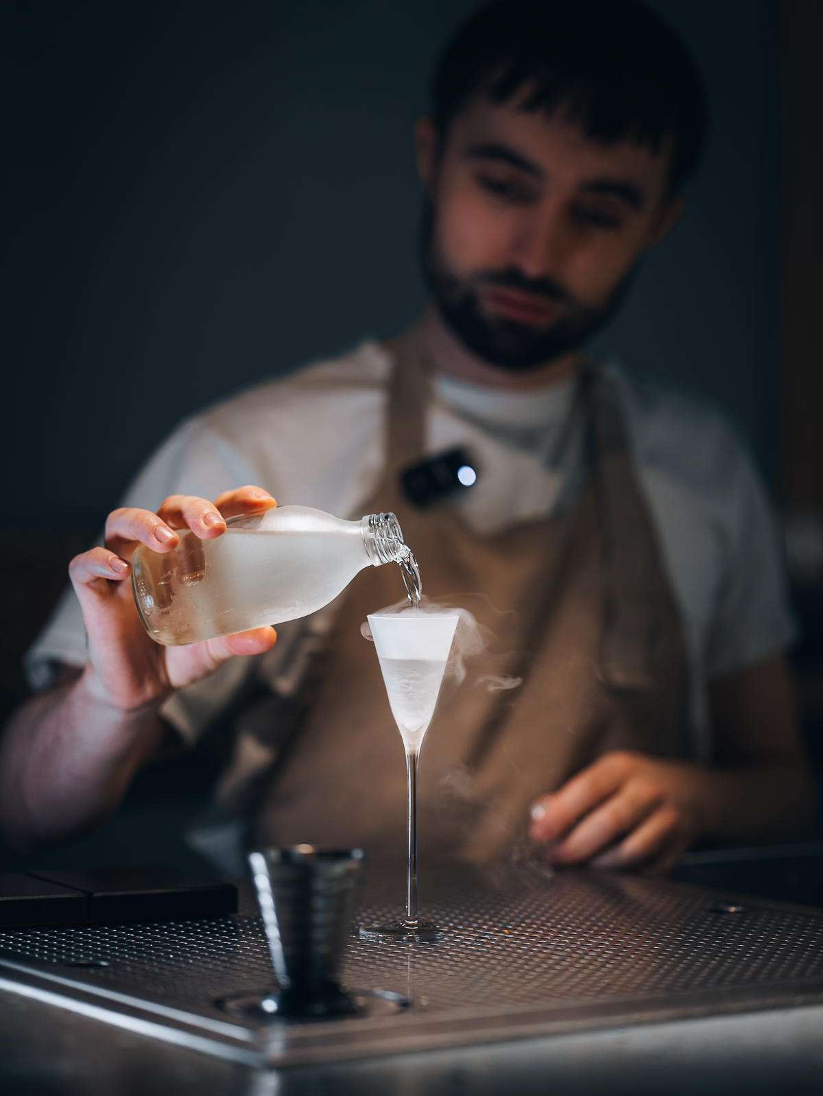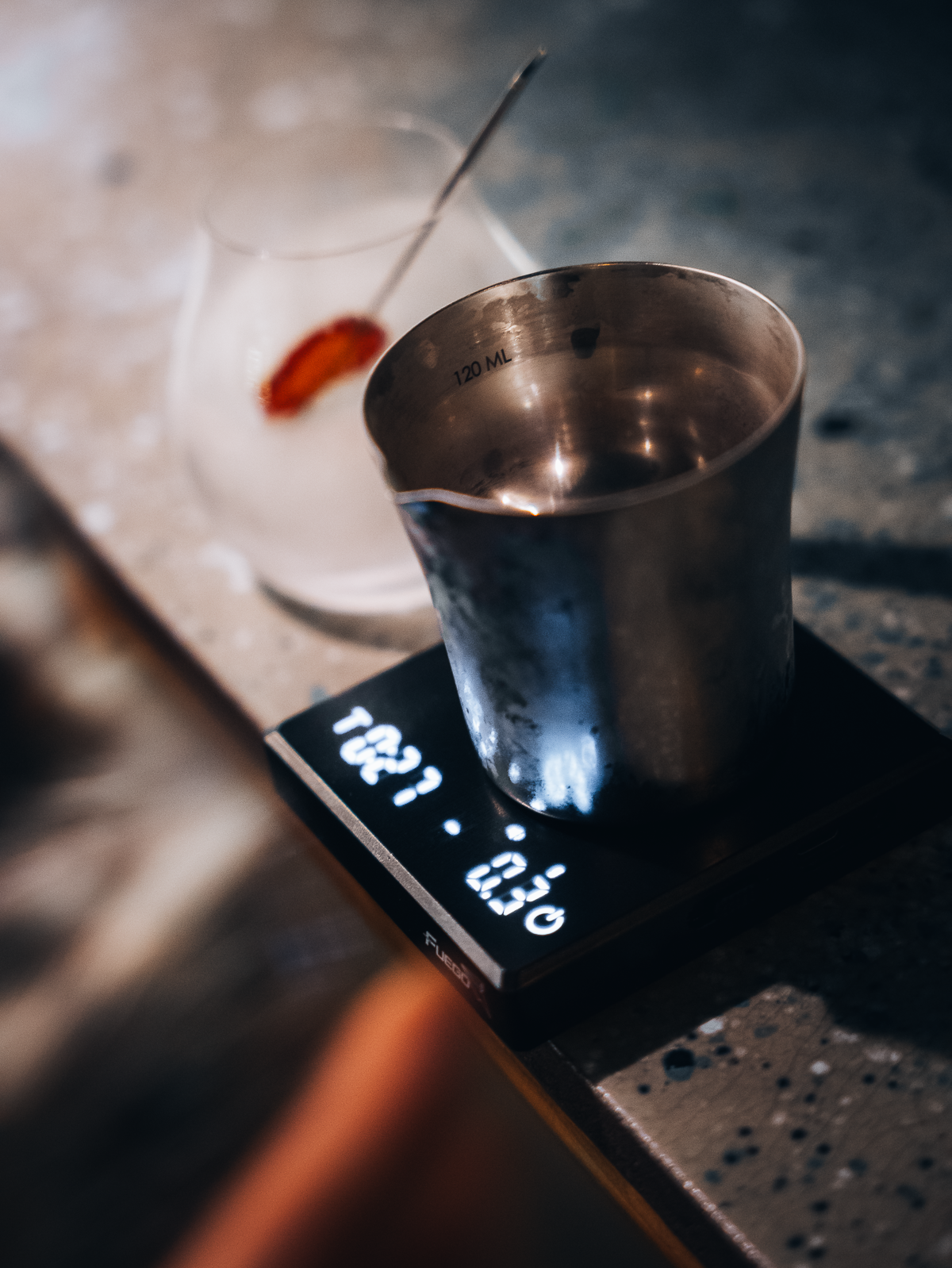 The image is striking: cocktails are measured on a scale. The reason? Fairness. On an unusual service (oyster shell, non-standardized artisanal glassware), the scale guarantees that everyone pays the same price for the same quantity.