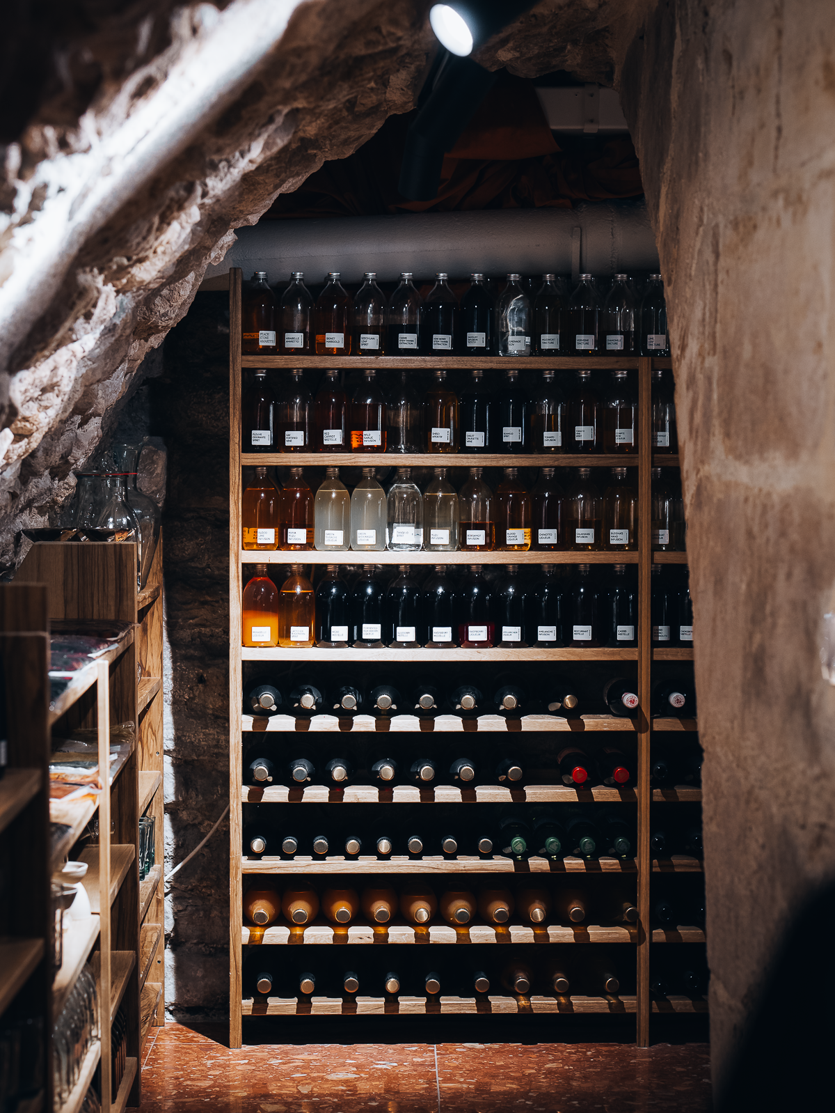 The cellar serves as an accessible entrance for local and walk-in customers. People come here for a glass of wine, a beer, or a bottled cocktail, just as they would choose a wine.