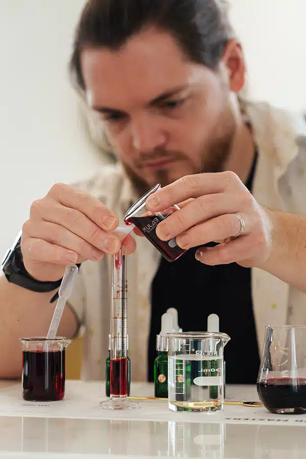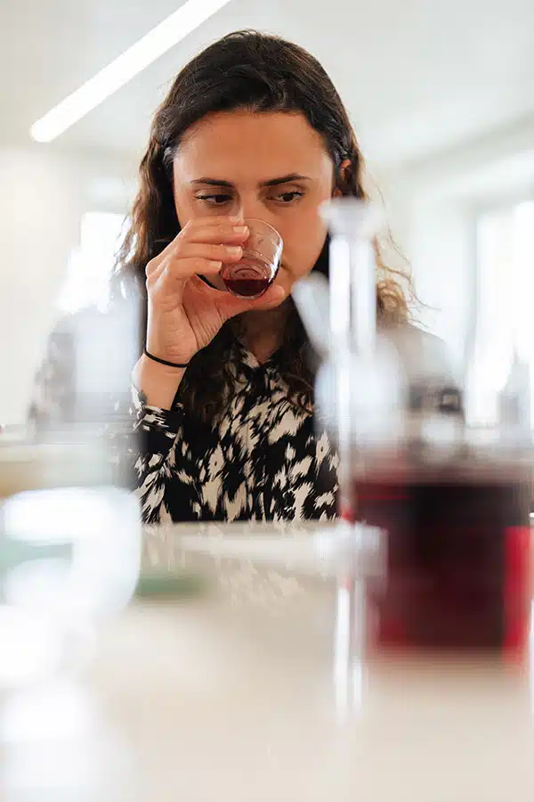Le plus intéressant, je crois, aura été le challenge n°3, car il demandait de faire un vrai travail de réflexion sur la couleur, l’émotion et leur rapport avec le goût. J’ai trouvé ça hyper intéressant. Le plus difficile aura probablement été de tenter de recréer l’assemblage aromatique du sirop de cerise Mathieu Teisseire. On nous avait proposé des fioles contenant des arômes et, ensemble, nous avons tenté de nous approcher du résultat original. Passionnant mais pas facile !