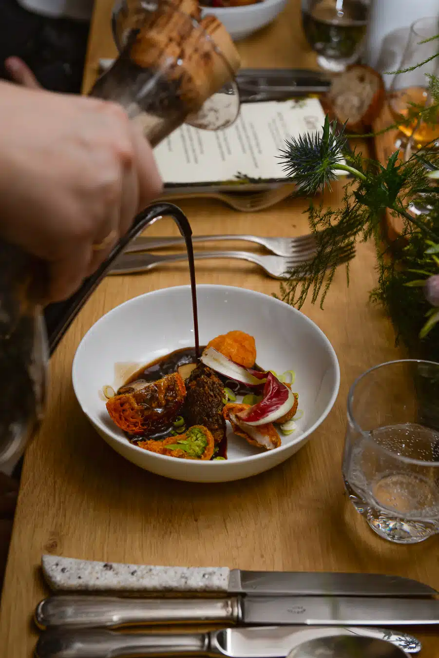 Le menu débutait par un bouillon de champignons et un tempura de légumes, suivi d’un maigre rôti accompagné d’une bisque de crustacés, le tout sublimé par le GLEN TURNER Triple Cask. En plat principal, une épaule d’agneau marinée aux épices Colombo trouvait un équilibre parfait avec le GLEN TURNER 12 ans. La soirée s’est conclue sur une touche élégante avec un Whisky sour revisité en dessert, une création que Chloé Charles avait déjà dévoilée lors de son passage à Top Chef devant le chef Pierre Gagnaire.