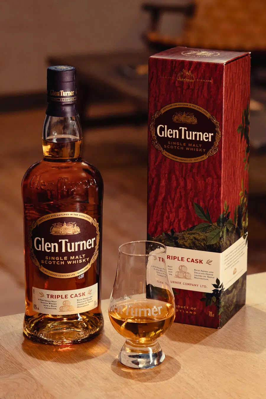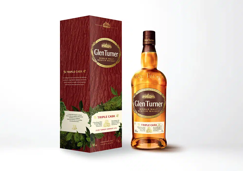 Les deux Single Malts GLEN TURNER (Triple Cask et 12 ans d'âge), sont désormais présentés dans un packaging repensé et affirmant le positionnement plus écoresponsable de la marque, tout en préservant l’authenticité du produit avec des matériaux plus respectueux de l’environnement.