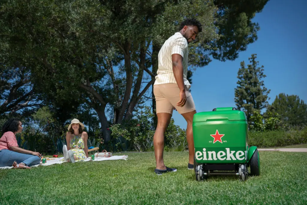 Vous en aviez rêvé , Heineken l'a inventé ! Encore mieux qu'un saint Bernard avec son tonneau de gnôle : une glacière intelligente qui vous suit partout comme un petit chien. Vous migrez devant la TV : votre glacière remplie de bière vous rejoint. Vous sortez bronzer dans la pelouse ? Pas de problème, avec ses roues, là aussi Heineken B.O.T vous suit à l'extérieur grâce à ses roues à mi-chemin entre le char d'assaut et la tondeuse. Et niveau capacité ? Là aussi elle devrait vous plaire puisqu'elle peut recevoir 12 bouteilles !