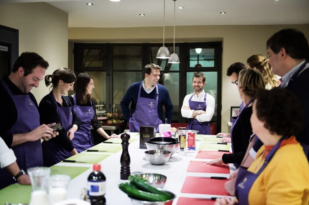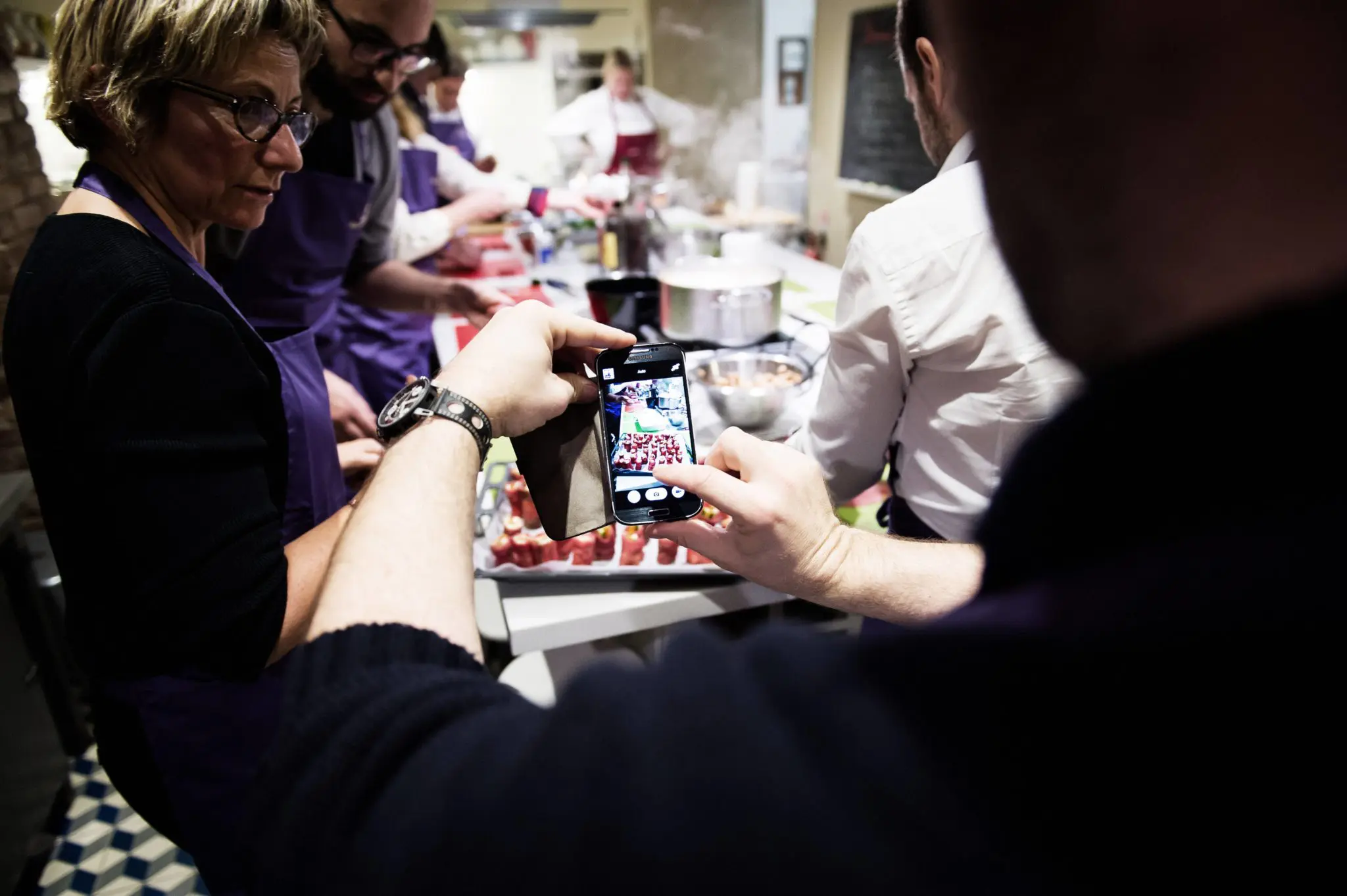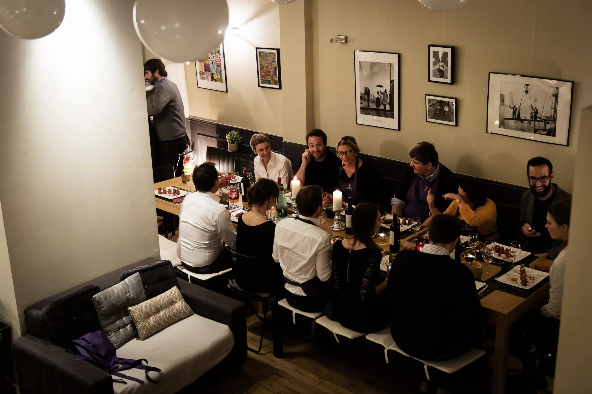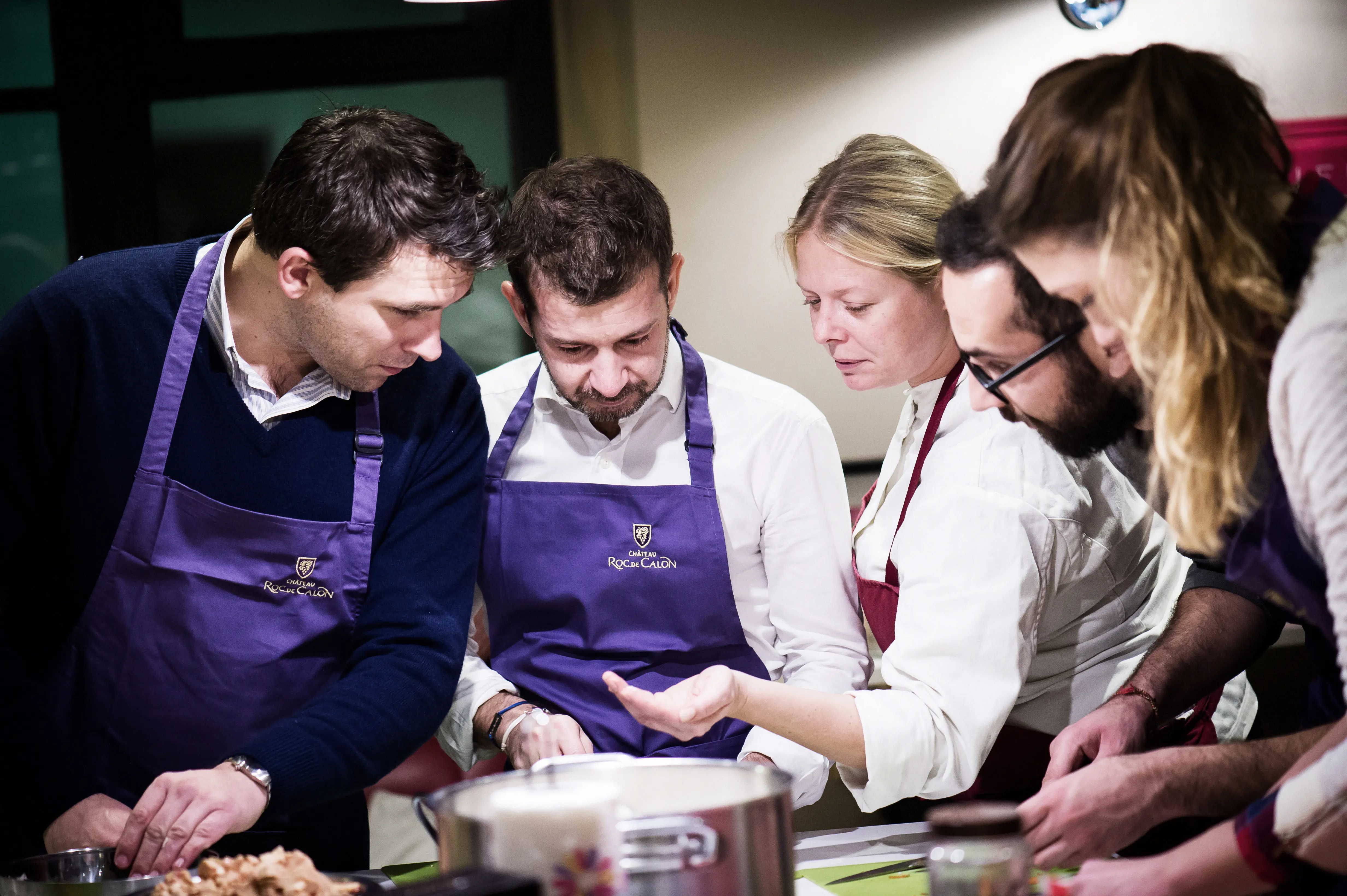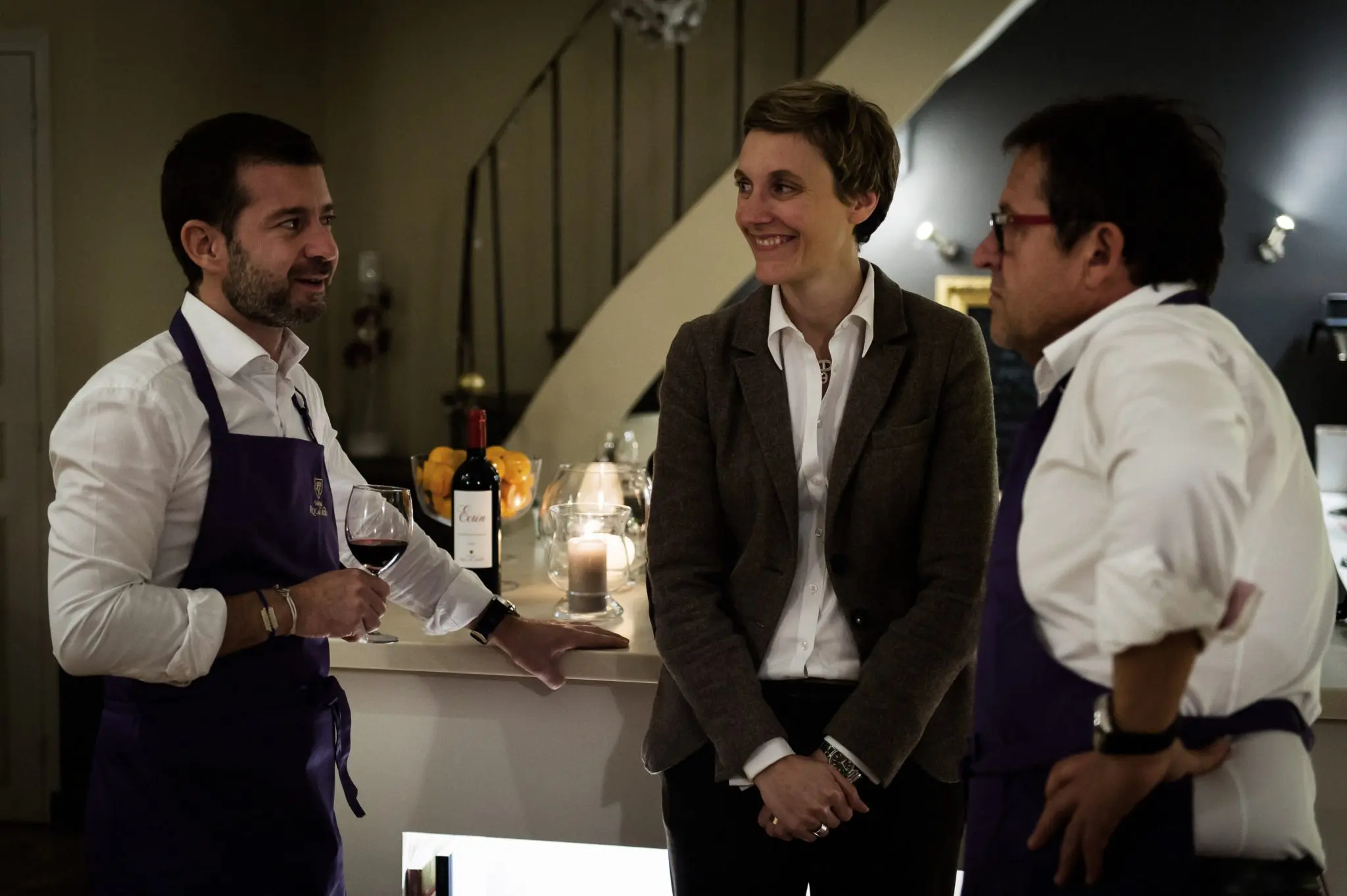 Le concept ? Un atelier cuisine accompagné d'une dégustation de vin, pour vous... et une personne de votre choix. 7 paires d'amis partagent la table pour une soirée intimiste et conviviale.