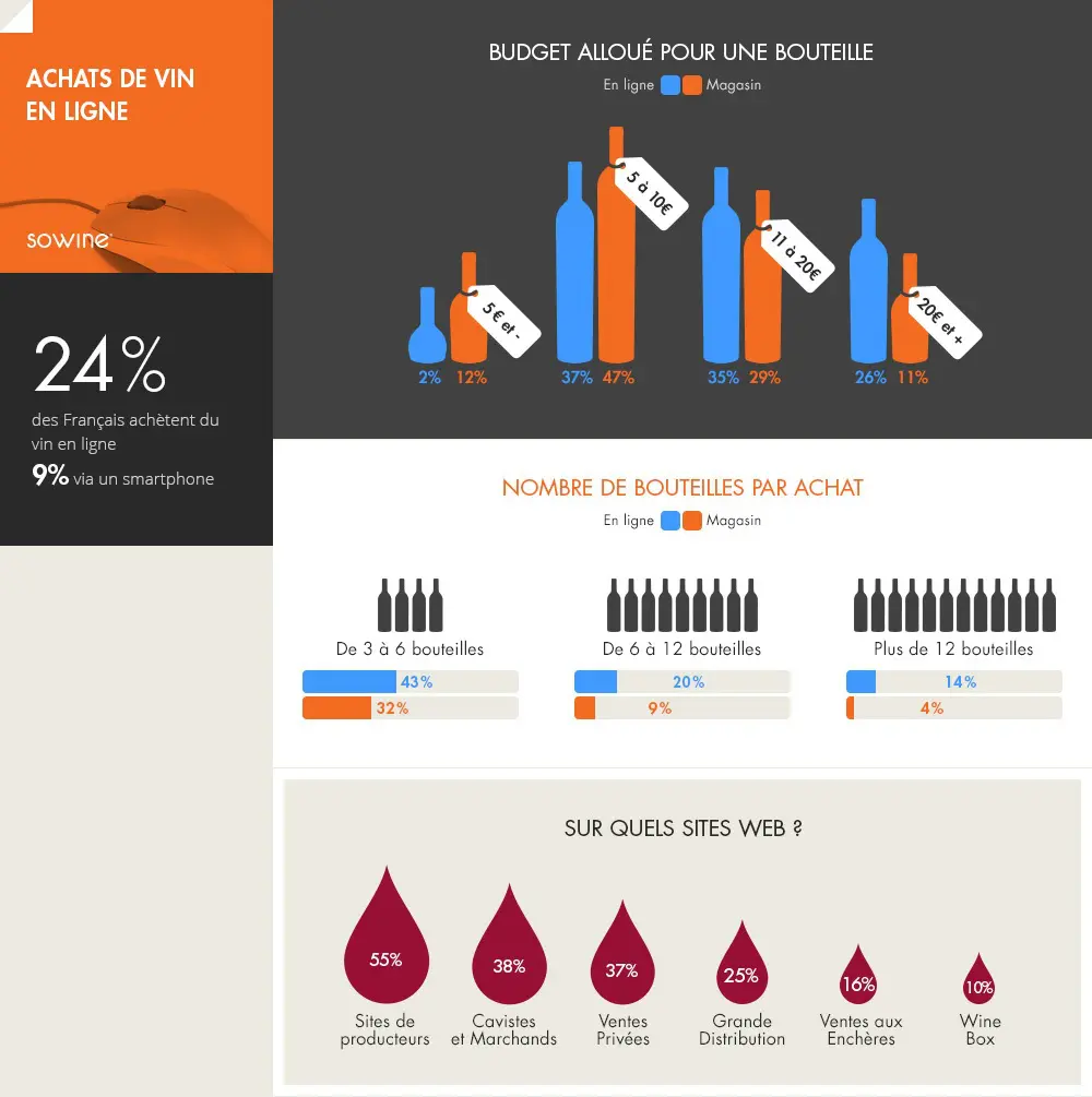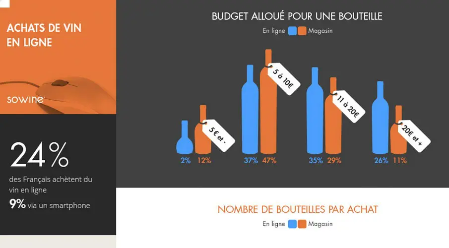On remarquera aussi que cette année, 24% des français achète du vin en ligne dont 9% via un smartphone.