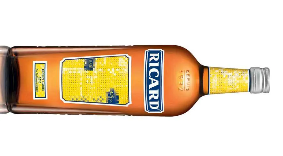 Ricard continue sa lancée des éditions limitées avec un partenariat cette fois avec Guillaume Leblon, pointure française de l'art contemporain, qui dans chacune de ses oeuvres créé un univers à mi-chemin entre fiction et réalité. C'est exactement ce que vous ressentirez lorsque vous fixerez longuement la bouteille : est-ce des pixels qui s'assemblent ou une photo d'osier retravaillée ? Un maillage d'un jaune lumineux, avec quelques points de bleu et de blanc, habille la bouteille Ricard pour les fêtes de fin d'année. Un clin d'oeil aux deux couleurs de prédilection de Ricard !