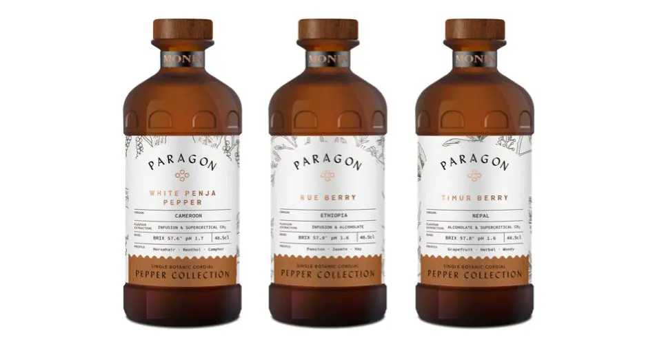 Paragon Cordial est une gamme de cordial botanique développée par Monin en collaboration avec Alex Kratena, et qui utilise des saveurs rarement utilisées, associées à des techniques très élaborées.