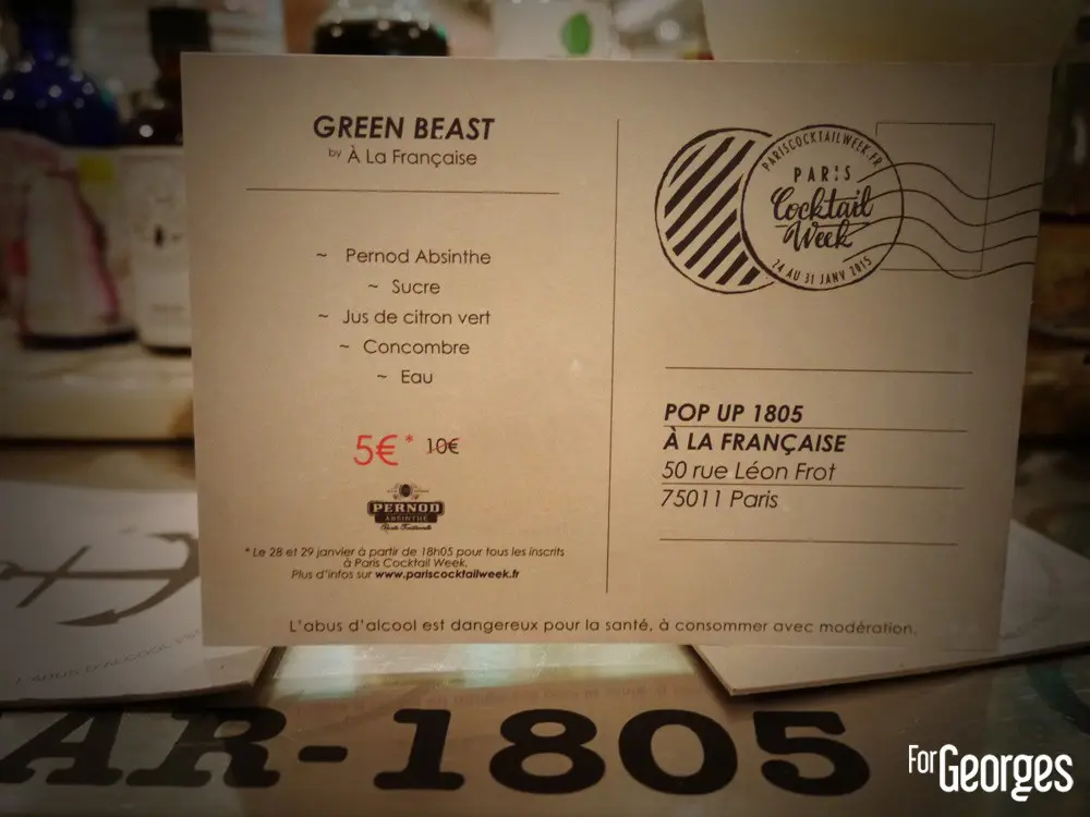 A la dégustation, le cocktail créé spécialement pour la Paris Cocktail Week : le Green Beast.