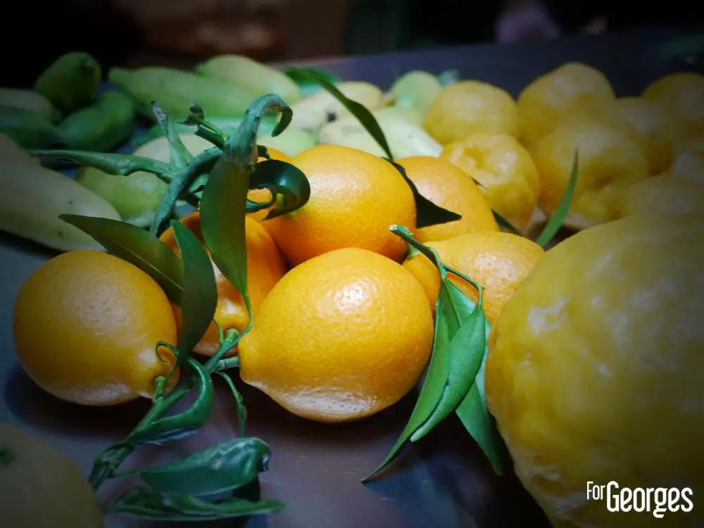 Devant autant de beaux agrumes, Fernando Castellon et Julien Escot ne peuvent s'empêcher de faire des tests de différents citrons dans la composition d'un White Negroni.