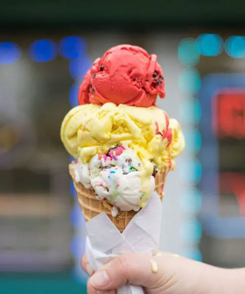 Inspiré de mon premier souvenir d’enfance de street food : manger un cornet de glace en me promenant dans le parc avec mes parents.