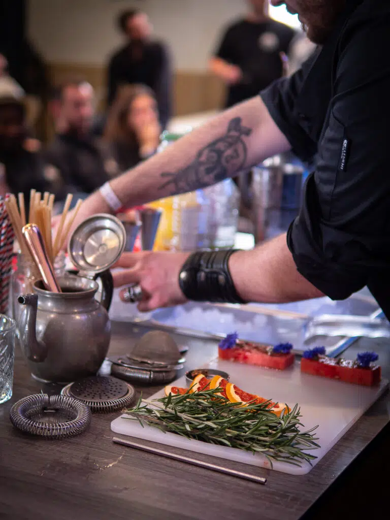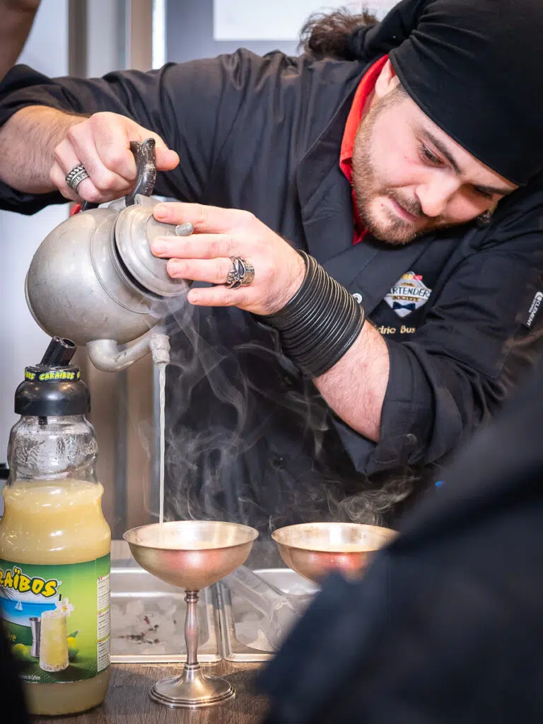 Ils auront l'après-midi pour reproduire leurs 2 cocktails, mais en version XXL cette fois ! Tous les invités de la soirées devront pouvoir tester leurs cocktails et voteront à l'issue de la soirée pour leur bartender préféré qui remportera le titre de vainqueur The Bartenders Society 2021 Pendant ce temps, les autres candidats ont la chance d'avoir 2 masterclass très inspirantes : la première par Santi Ortiz (33 by Santi Ortiz, Barcelone) qui explique la genèse de sa créativité, jusqu'à comment transformer une paëlla en cocktail ! Et une autre très émouvante sur le parcours de Jad Ballout qui a perdu son établissement à Beirut avec la terrible explosion en 2020, pour recréer son nouvel établissement Dead End Paradise !