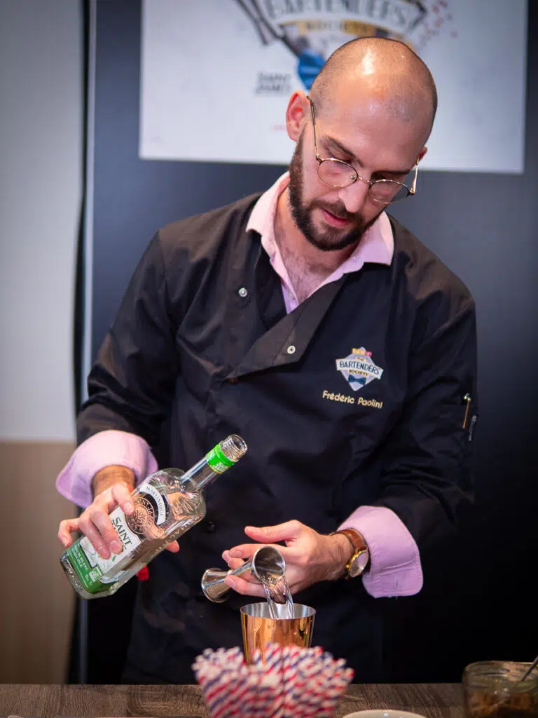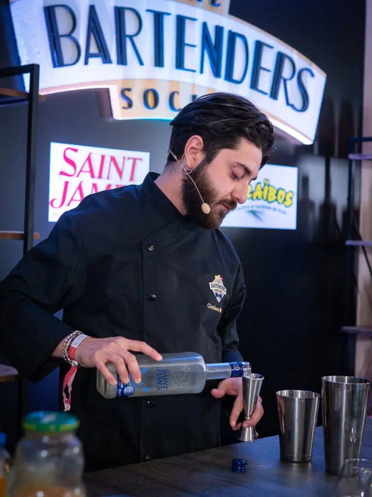 Ils étaient 27 candidats au départ de The Bartenders Society 2021 : 18 de France et 9 internationaux en provenance de Belgique, Grèce, Italie, Allemagne, Espagne, Suisse, Angleterre ou encore Etats-Unis ! Avec un thème qui plaçait la barre toujours plus haut puisque les candidats s'affrontaient sur le thème "Inspiration Grands Chefs". Quelques minutes de préparation puis à eux de s'élancer pour reproduie les 2 cocktails qui leur ont permis d'être présents à la grande finale mondiale. Un premier cocktail avec SAINT JAMES autour d'une réinterprétation d'un plat culte d'un grand chef de la haute gastronomie. Un second mono ingrédient, mais travaillé de différentes façon, sans alcool avec les jus de fruit Caraïbos.