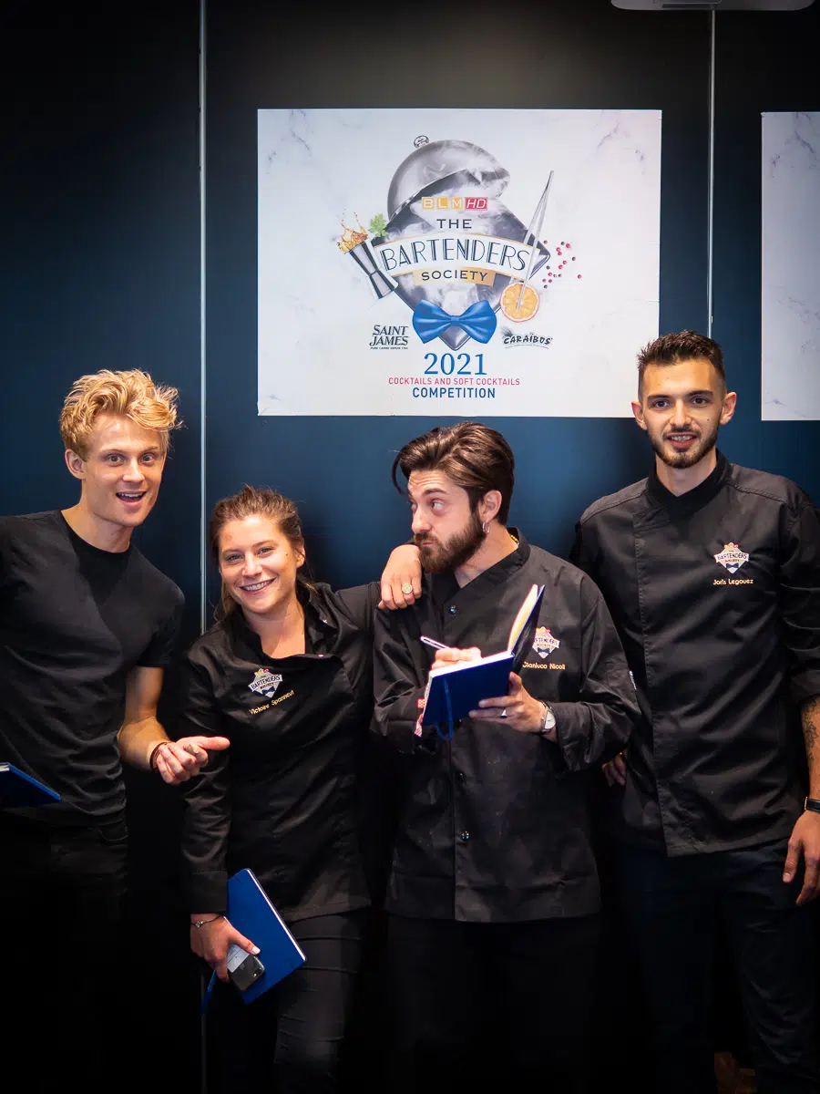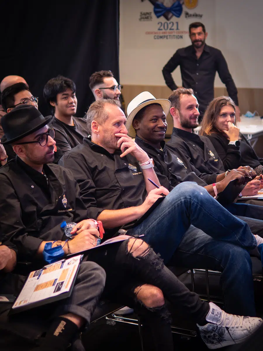 Ils étaient 27 candidats au départ de The Bartenders Society 2021 : 18 de France et 9 internationaux en provenance de Belgique, Grèce, Italie, Allemagne, Espagne, Suisse, Angleterre ou encore Etats-Unis ! Avec un thème qui plaçait la barre toujours plus haut puisque les candidats s'affrontaient sur le thème "Inspiration Grands Chefs". Quelques minutes de préparation puis à eux de s'élancer pour reproduie les 2 cocktails qui leur ont permis d'être présents à la grande finale mondiale. Un premier cocktail avec SAINT JAMES autour d'une réinterprétation d'un plat culte d'un grand chef de la haute gastronomie. Un second mono ingrédient, mais travaillé de différentes façon, sans alcool avec les jus de fruit Caraïbos.