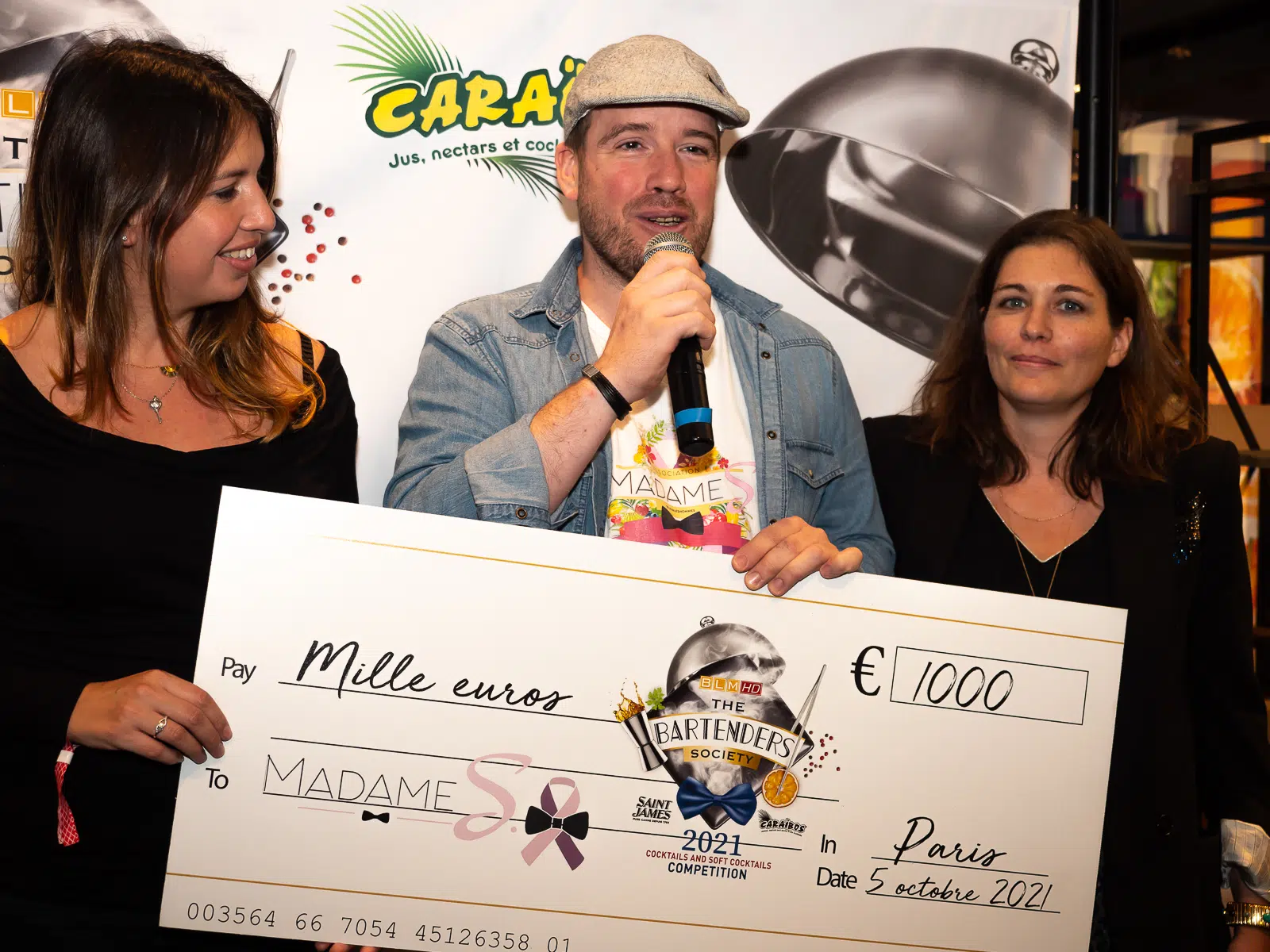 Dernière ligne droite, la soirée bat son plein. Ce sont plusieurs centaines de cocktails que les 4 finalistes doivent sortir et expliquer avec un objectif : conquérir le palais et le coeur du public qui votera pour son bartender préféré. La lumière se tamise, il est l'heure du podium, en commençant par le don de 1000 euros à l'association Madame S, fondée par Mathieu Gouret du Santeuil Café.